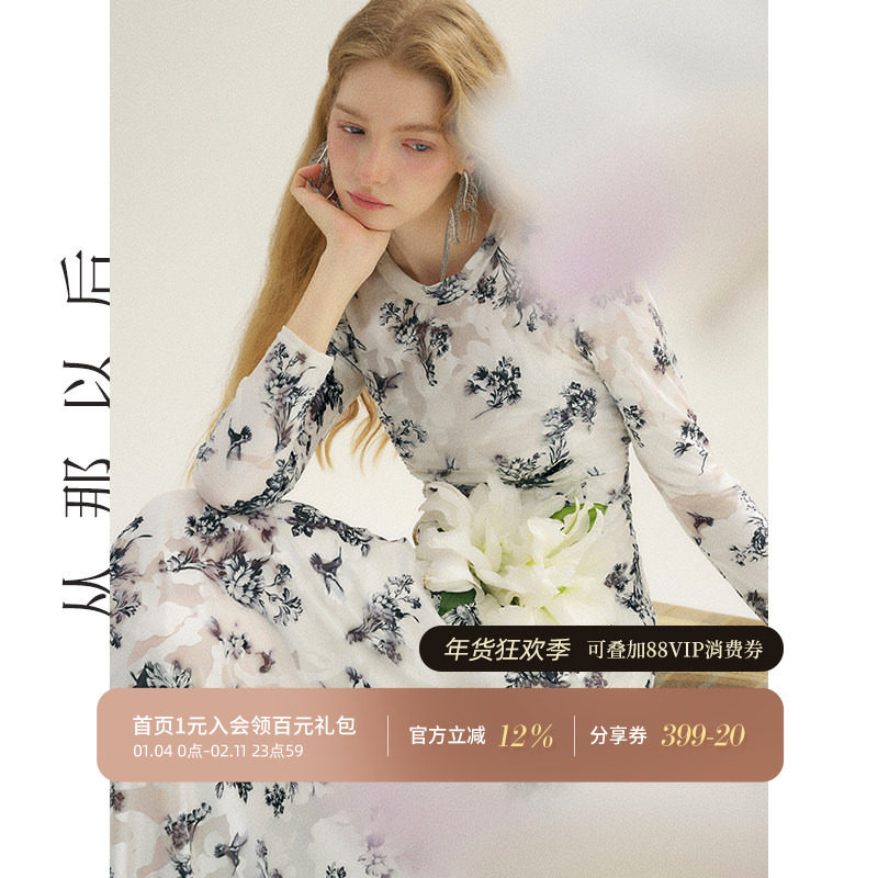 从那以后碎花长裙法式风连衣裙秋冬款长袖裙子高级感茶歇裙女秋季