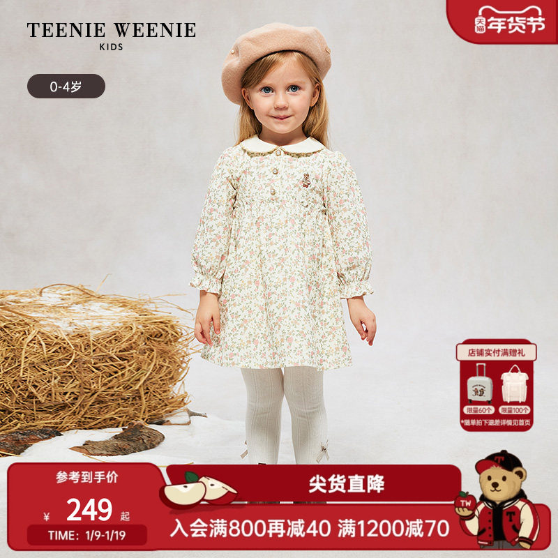 TeenieWeenie Kids小熊童装24秋冬款女宝淑女娃娃领碎花连衣裙