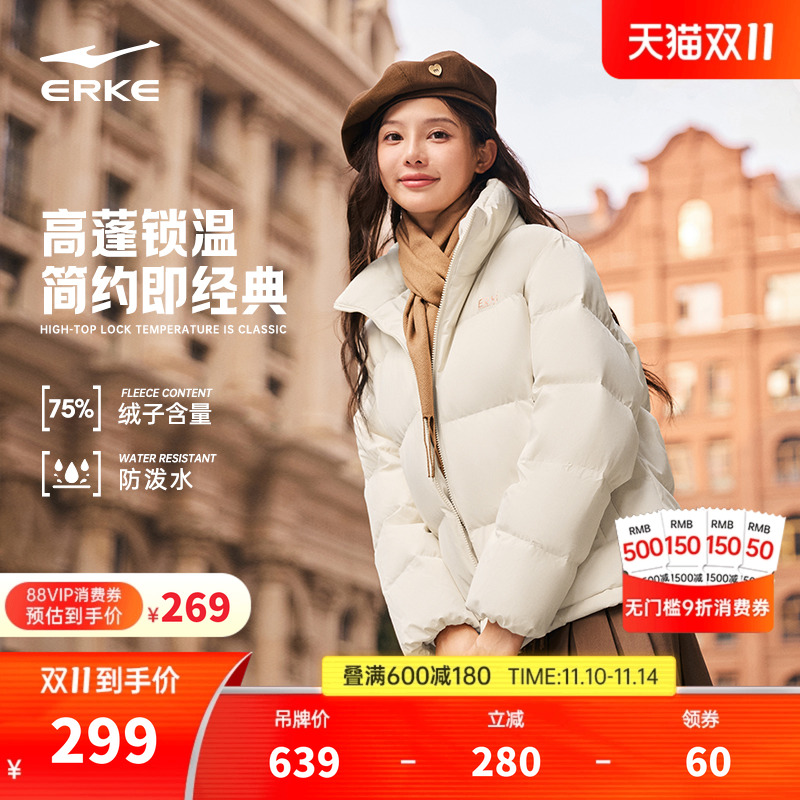 鸿星尔克羽绒服女冬季新款女士三防好看短款面包棉服棉袄外套女款