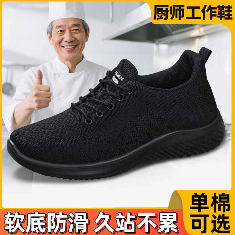 厨师鞋男防滑专用透气厨房黑色工作运动不累脚新款夏季老北京布鞋