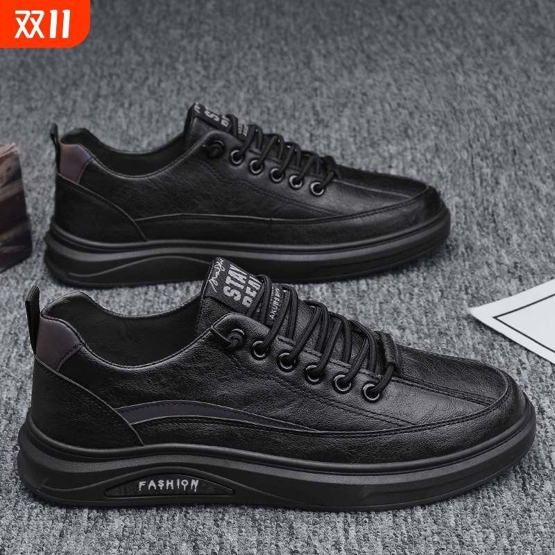 皮鞋男鞋秋季厨师上班防滑防水工作厨房专用休闲黑色耐脏劳保板鞋