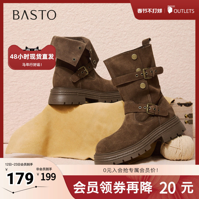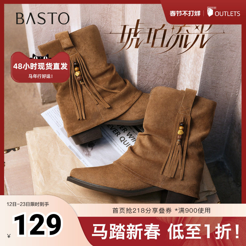 百思图2025冬季新款商场同款西部靴时尚复古厚底女中靴BP338DZ5