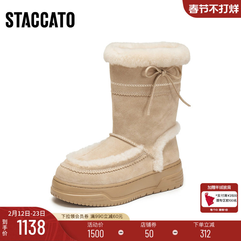 思加图冬季新款英伦风雪地靴保暖毛里厚底中靴女靴子M3676DZ5