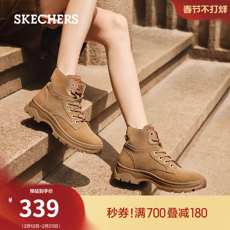 斯凯奇马丁靴废土风大黄靴春季女鞋厚底户外旅游靴中筒靴切尔西靴