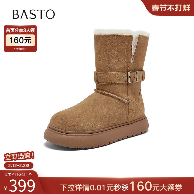 [定制小码34/大码40胖瘦脚]思加图冬复古雪地中靴女EUW02DZ5A