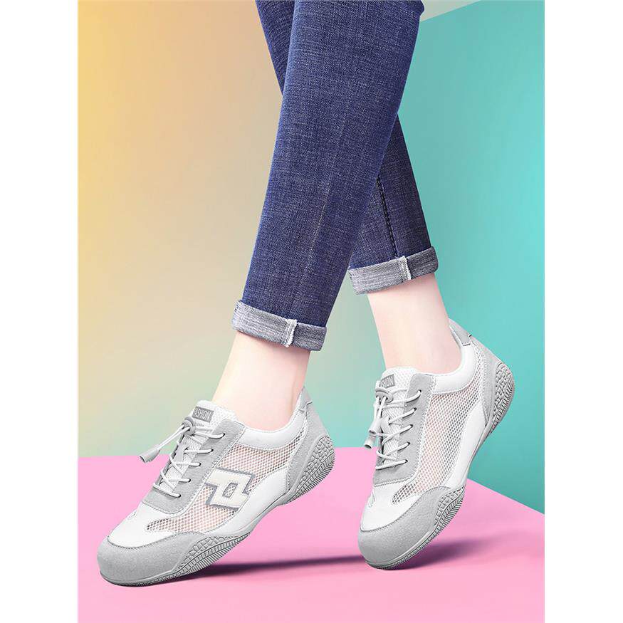 女子真皮春夏新款网面透气小白鞋薄款平底旅游鞋跑步阿甘单鞋软皮