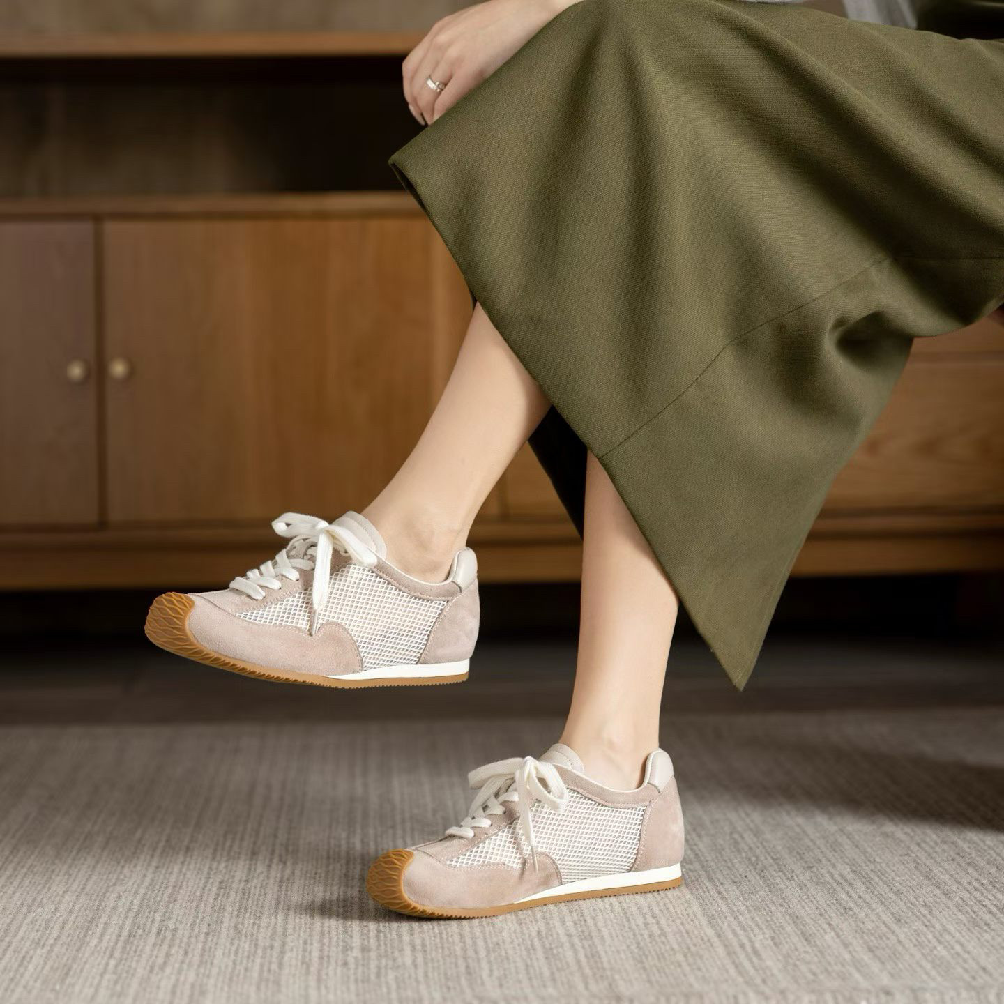 2026春夏新款平底真皮运动鞋女透气百搭复古阿甘鞋轻便软底跑步鞋