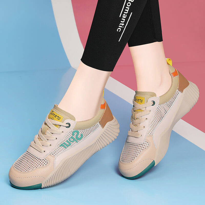 女子春夏软底网面透气网鞋轻便真皮运动跑步鞋平底薄款休闲旅游鞋