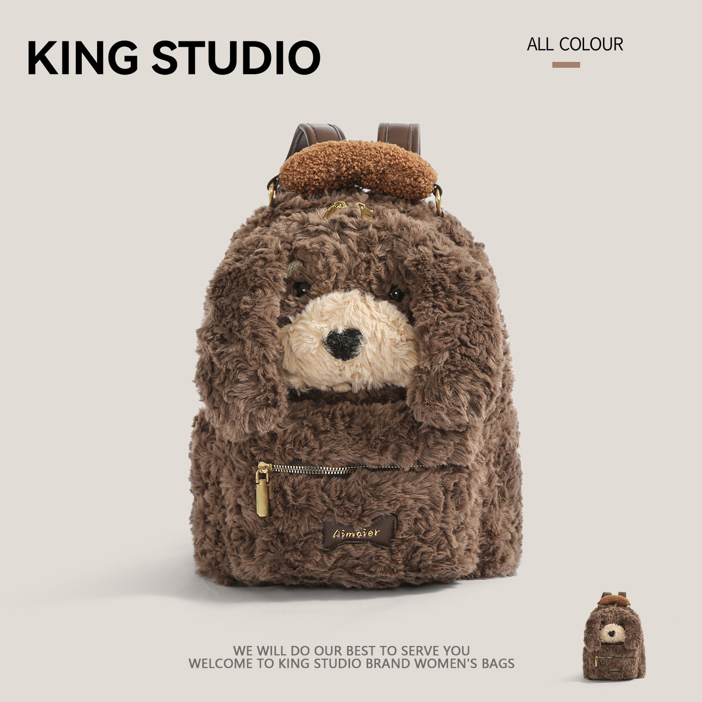 可爱熊头双肩包包女冬季2025新款潮时尚卡通毛绒包休闲大容量背包