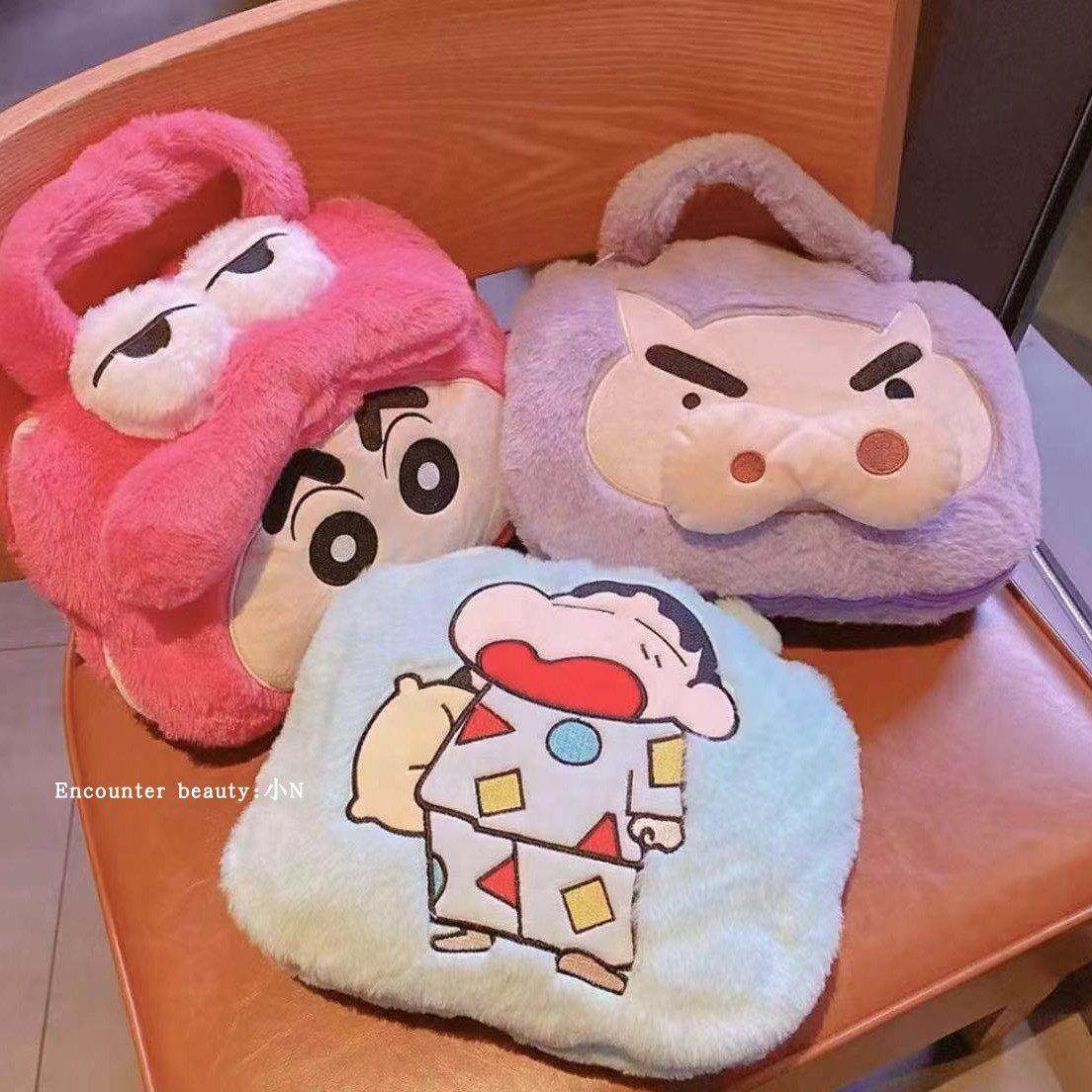 日系便携卡通蜡笔小新小拎包抱枕毯子一体车载办公室毛毯空调盖毯