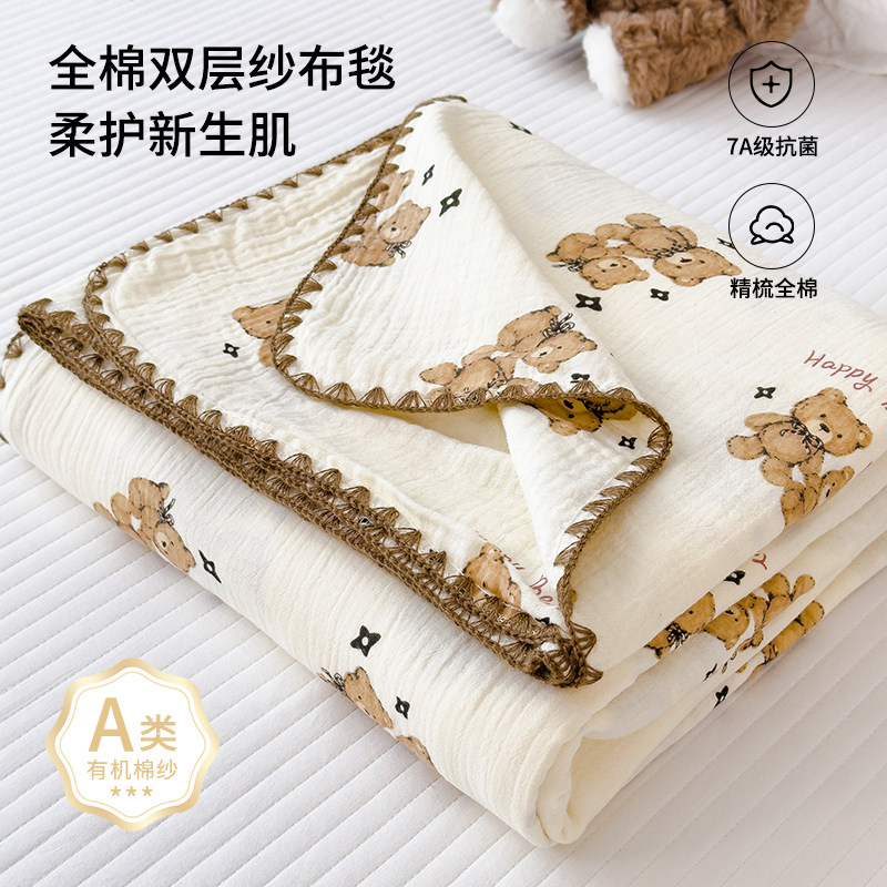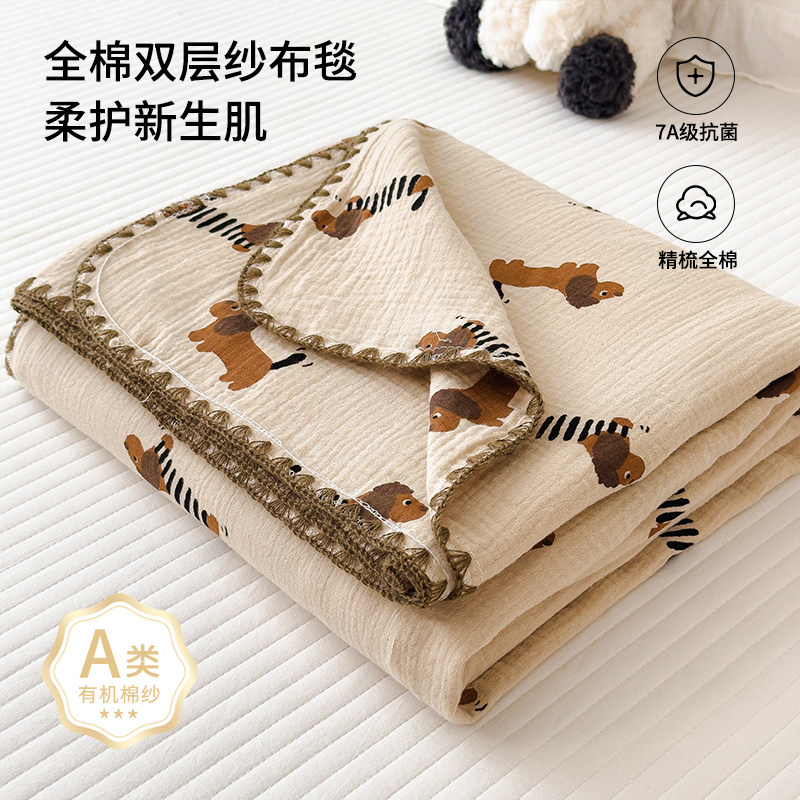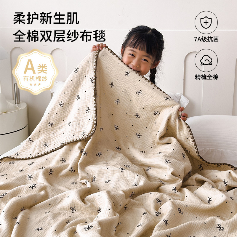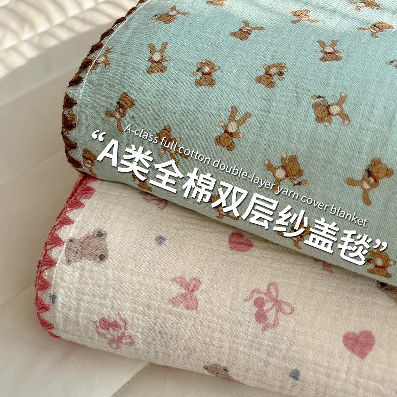 A类婴儿童纯棉双层纱盖毯午睡沙发小毯子全棉办公室毛毯空调被芯