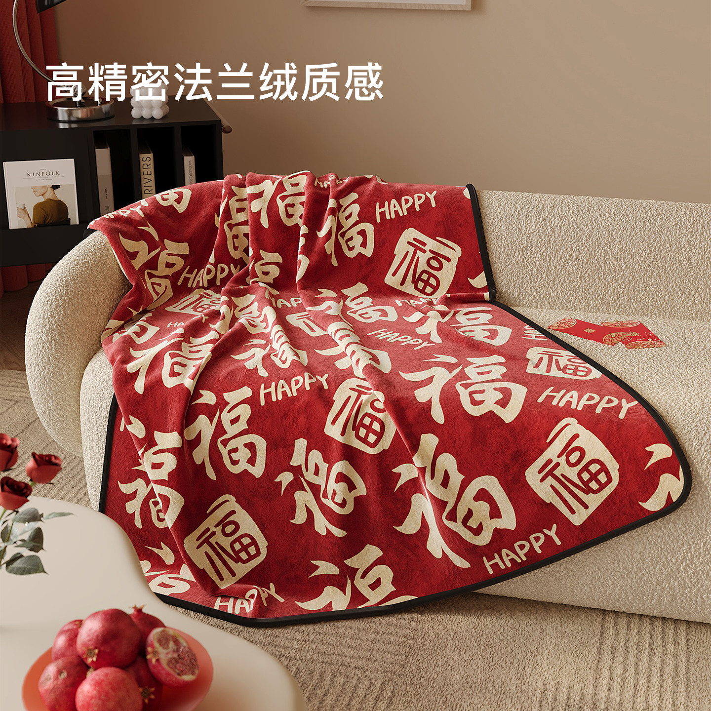 红色福字喜庆法兰绒午睡毯子客厅高级氛围感盖毯沙发毯办公室毛毯