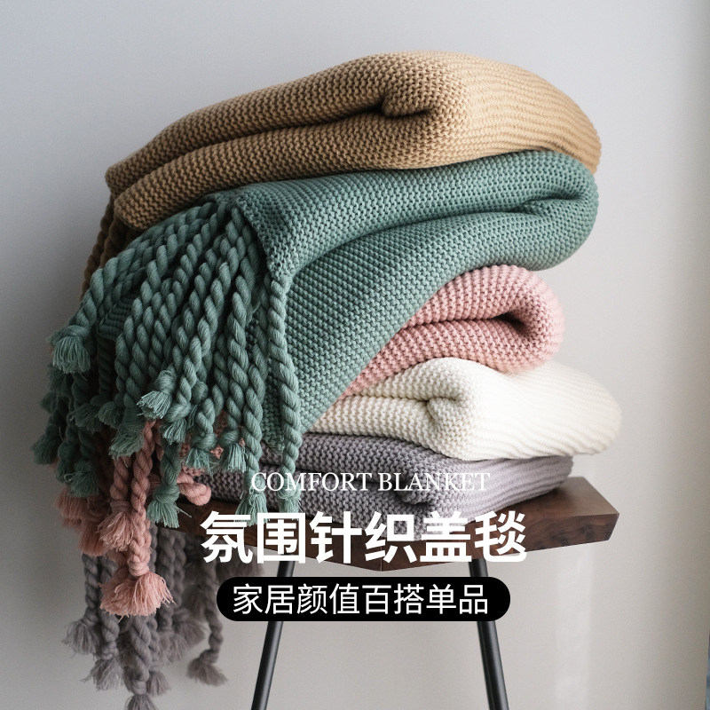 如奕头等舱航空毯氛围针织盖毯办公室毛毯流苏针织午睡毯披肩毯子