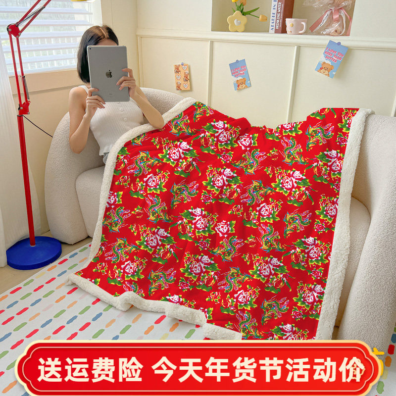 东北大花被子办公室毛毯搞怪红色喜庆结婚盖毯复古午休毯学生午睡