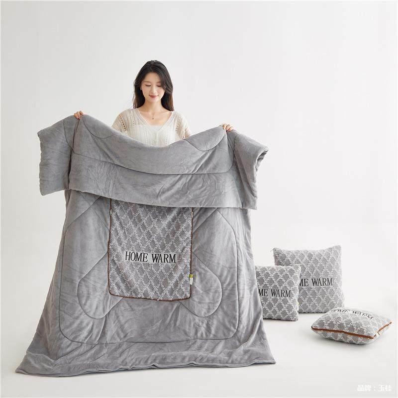 休加垫厚抱枕被子两用办公室毛毯靠枕头午车LVC载二合一叠高档车