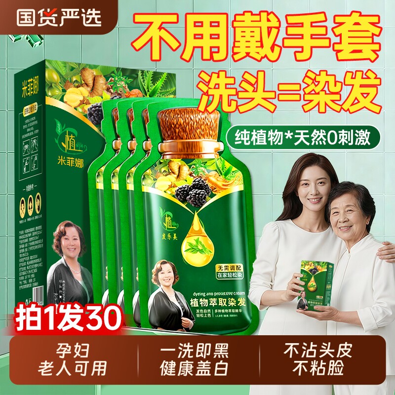 染发剂植物纯自然黑天然无刺激泡泡一洗黑支黑正品自己在家染发膏