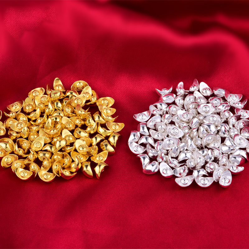 王师兄S925纯银元宝实心小元宝招财进宝摆件镀金元宝银锭供曼扎装