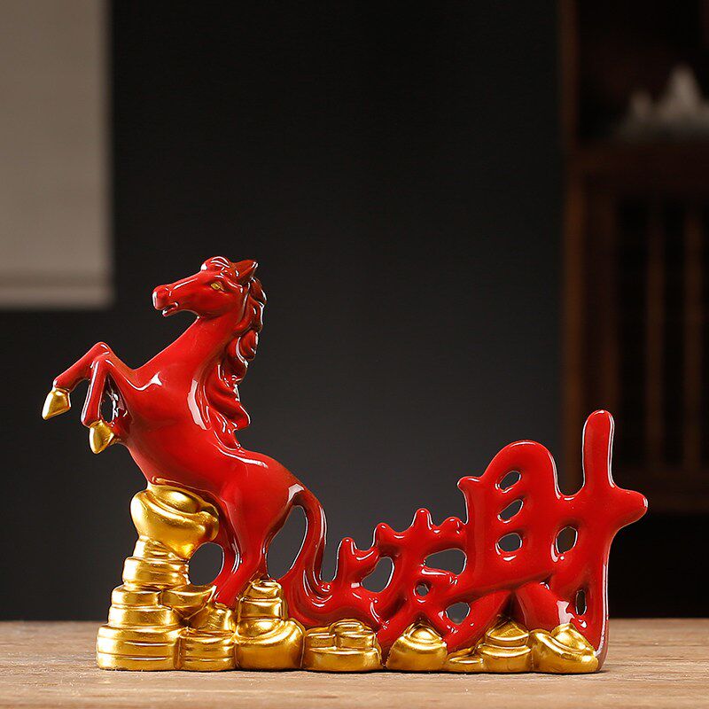 马上有钱装饰画新中式客厅玄关招财进宝摆件红马聚宝盆桌面摆台画