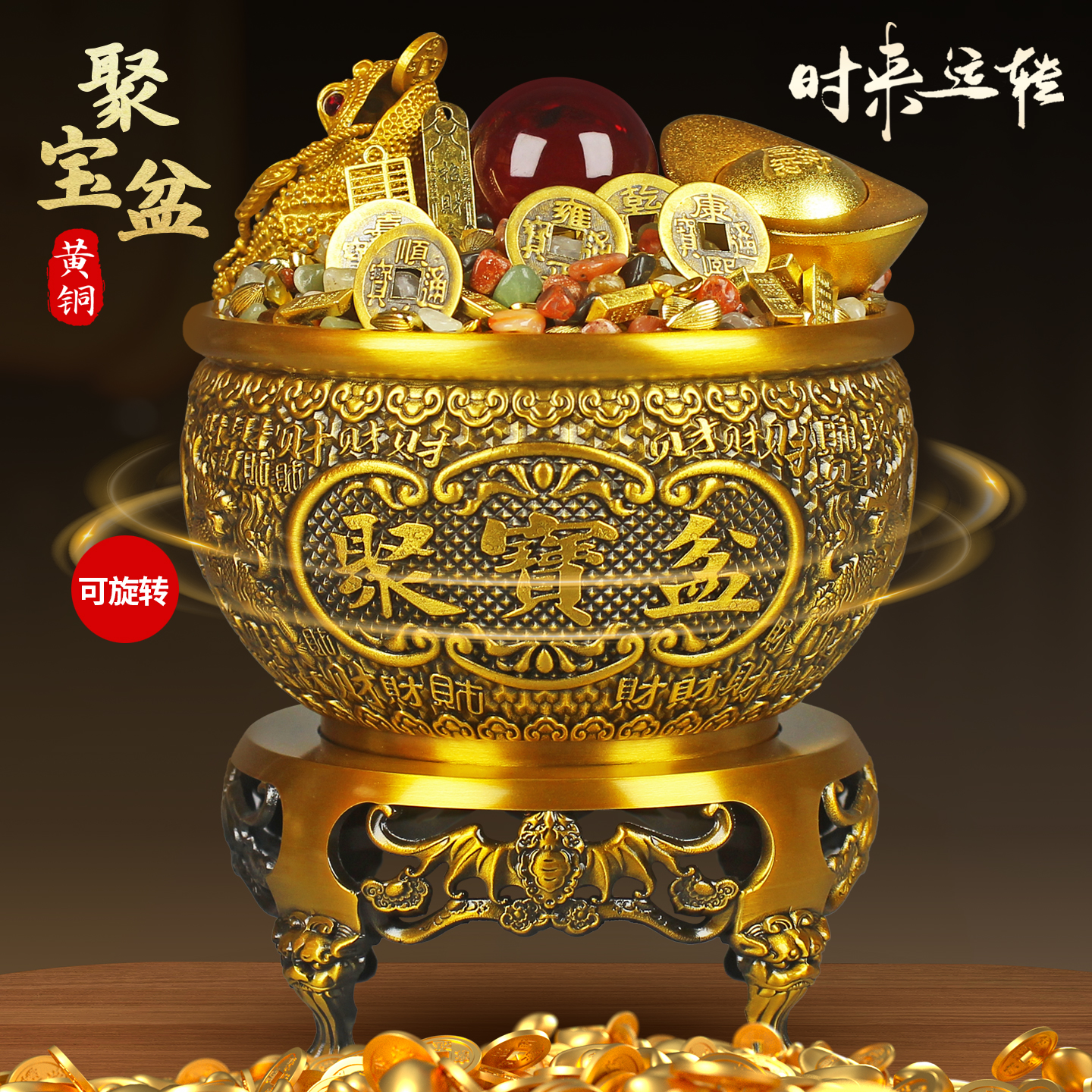 2026招财进宝摆件家用旺宅新款聚宝盆聚财黄铜办公室客厅时来运转