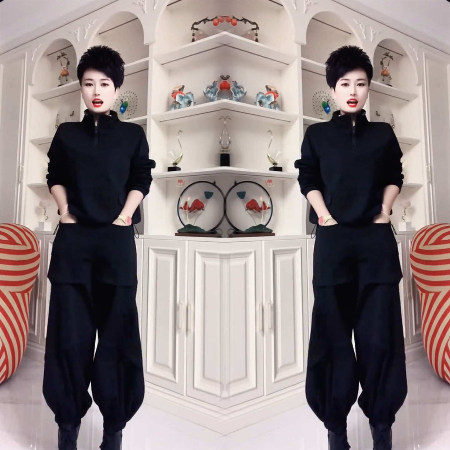 时尚纯色套装女2025秋冬新款洋气显瘦立领卫衣阔腿裤气质两件套潮