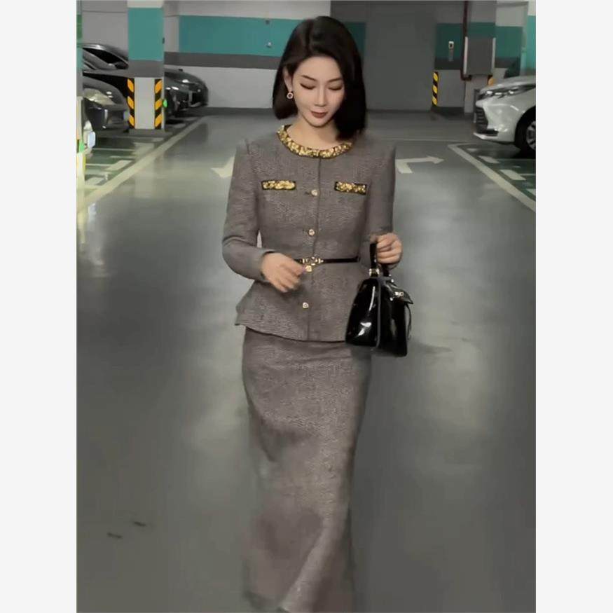 千金风时尚套装女秋冬季新款高级感百搭气质外套半身裙两件套女潮