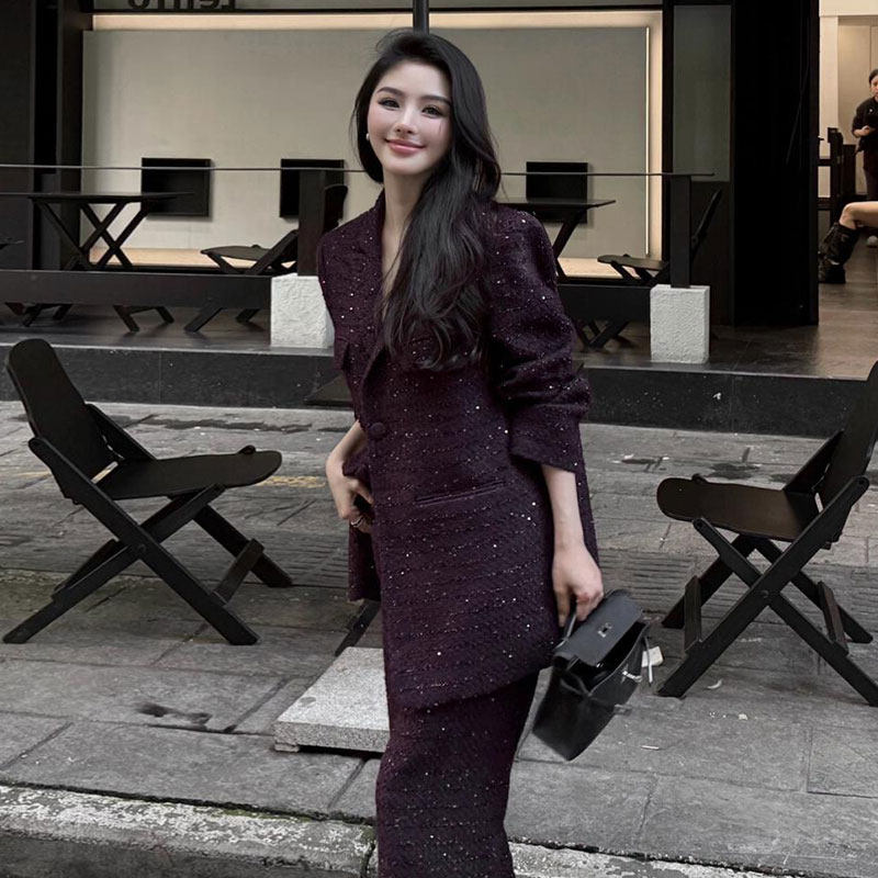 高级感御姐时尚气质套装女秋冬新款亮片西服外套高腰裤子两件套潮