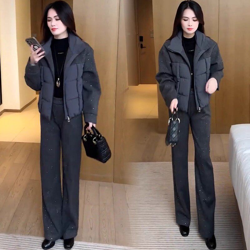 时尚套装女2025冬季新款休闲气质显瘦保暖棉服外套阔腿裤两件套潮