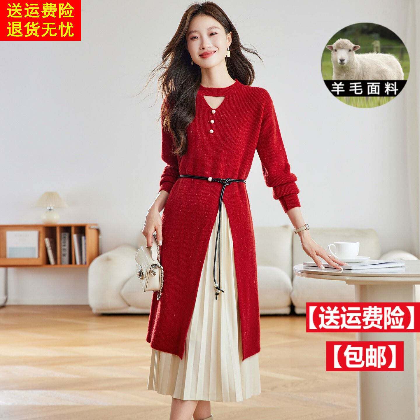 高档时尚洋气羊毛针织连衣裙两件套女装秋冬季气质减龄套装毛衣裙
