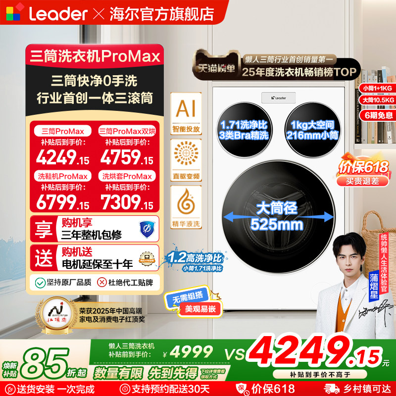 海尔智家统帅Leader三筒懒人洗衣机ProMax滚筒家用全自动三桶