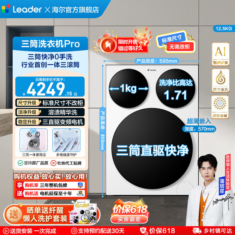 海尔出品统帅三筒懒人洗衣机分区家用12.5kg全自动ProMax版