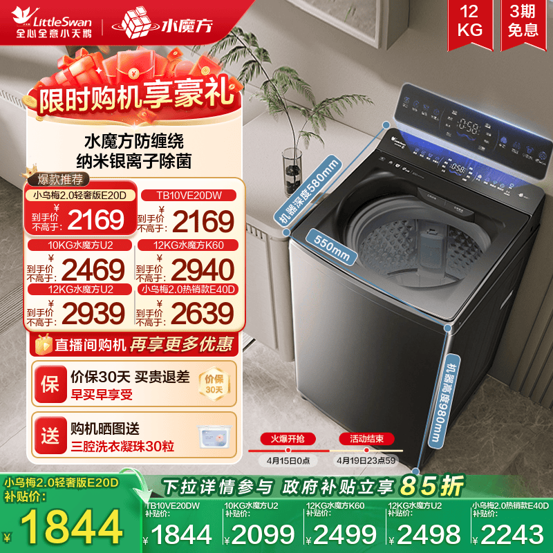 【跨代机皇】小天鹅小乌梅5.0家用全自动10/12KG滚筒洗衣机K60