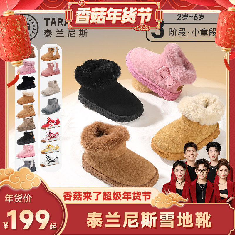 TATA他她童鞋儿童雪地靴冬季加绒棉鞋毛毛加厚软底女童保暖短靴子