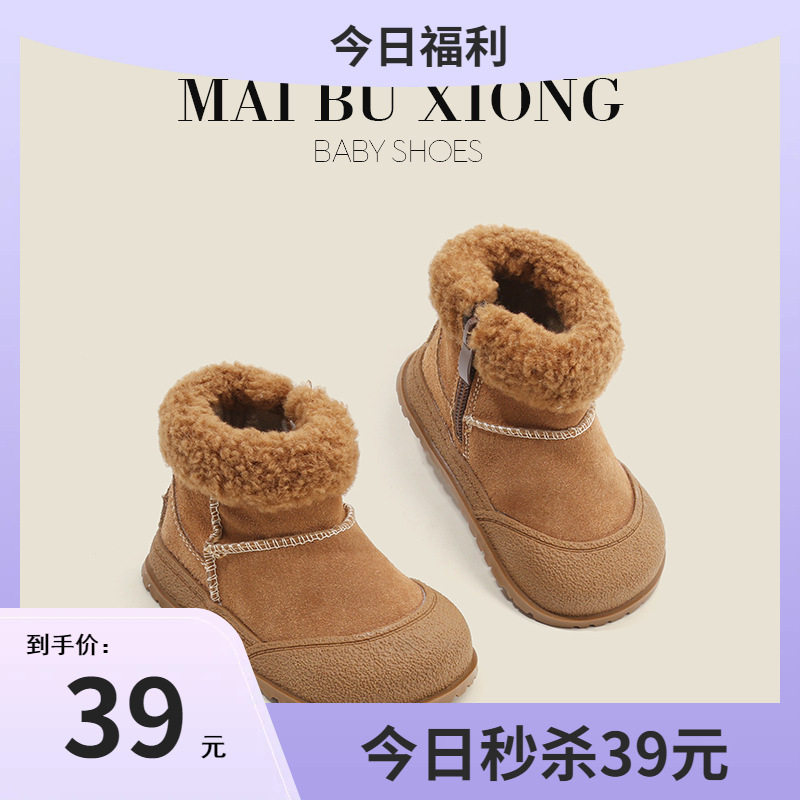 小米步儿童雪地靴2025冬季新款女童加绒加厚毛绒短靴男童保暖棉鞋