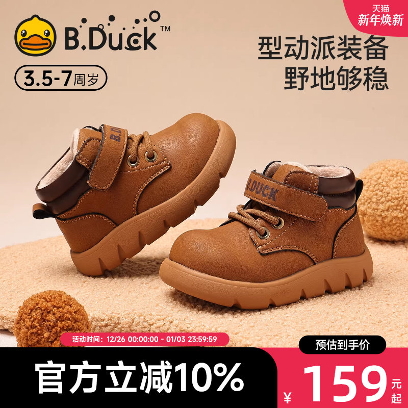 小黄鸭童鞋儿童靴子儿童短靴2025冬季新款男童加绒保暖宝宝二棉鞋
