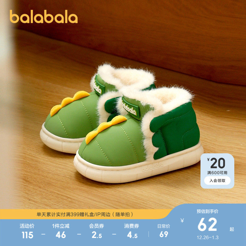 巴拉巴拉儿童秋冬棉靴加绒短靴居家外穿包跟棉鞋男童女童可爱靴子