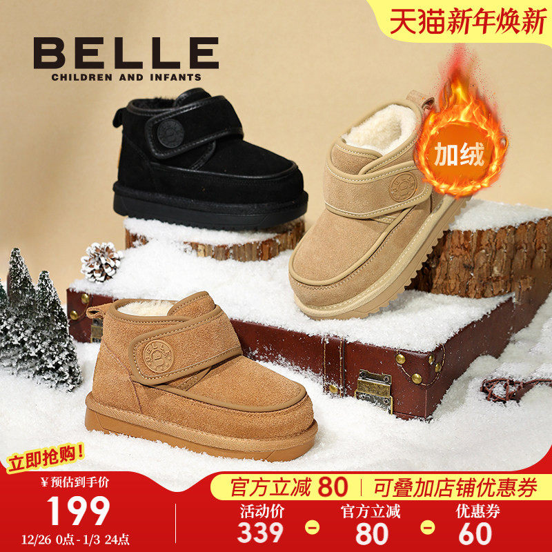 百丽童鞋儿童雪地靴女童短靴冬季新款女孩宝宝加绒保暖户外大棉鞋