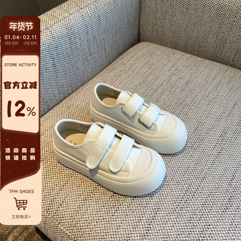 【TFM】2026春季新款魔术贴厚底小白鞋女百搭增高休闲板鞋面包鞋