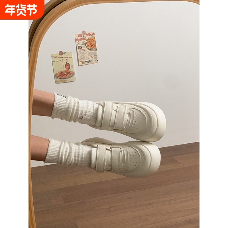 鲁鲁蛋 魔术贴厚底小白鞋女款2026新款春季小众不撞款板鞋休闲鞋