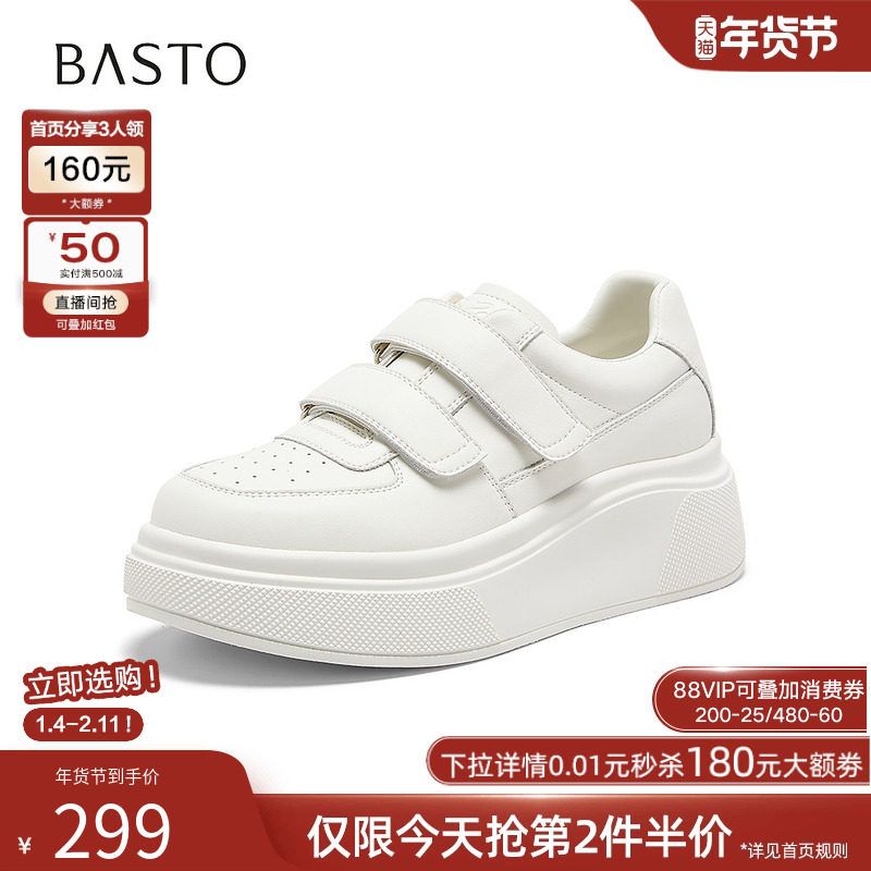 百思图2026春季新款魔术贴厚底小白鞋板鞋休闲运动女鞋W0522AM6