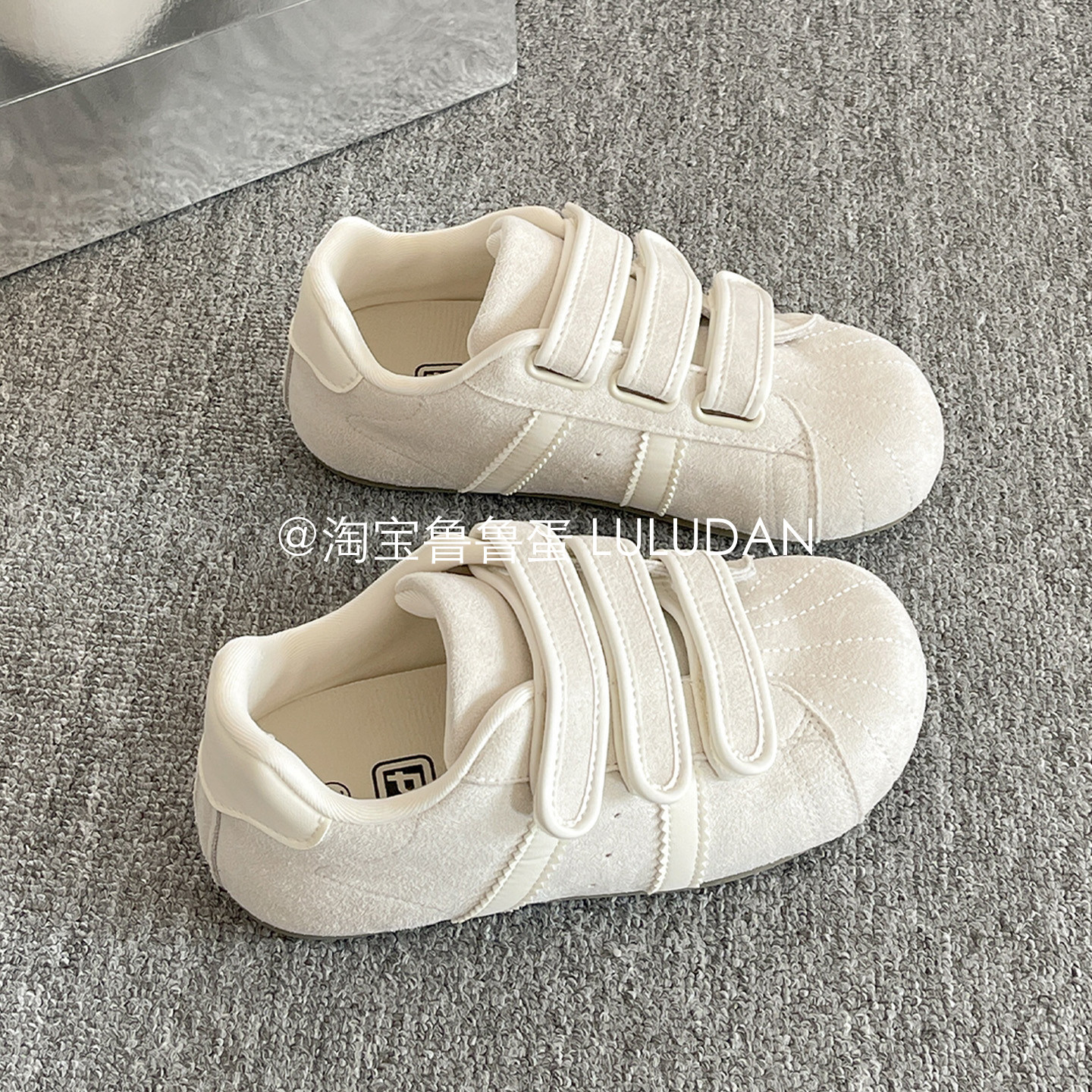 鲁鲁蛋 魔术贴厚底小白鞋女款2025新款秋冬女鞋板鞋复古德训鞋子