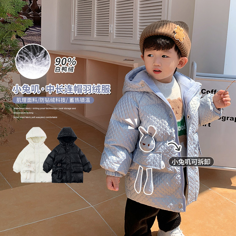 - 男中童羽绒服中长款