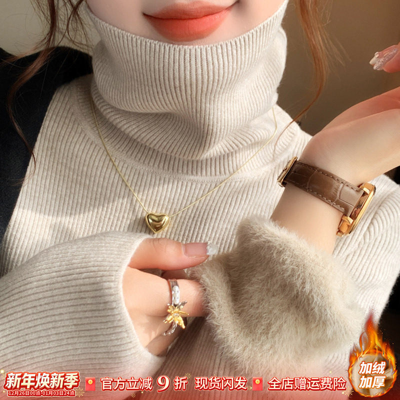 堆堆领打底衫女内搭秋冬季2025新款加绒加厚高领针织毛衣保暖上衣