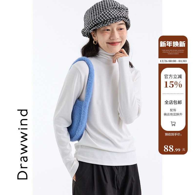 画风drawwind秋冬季堆堆领打底衫女纯色高领内搭长袖上衣2025新款