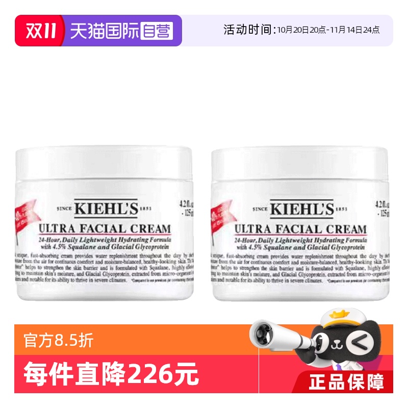 Kiehl's科颜氏高保湿面霜125ml*2补水保湿滋润晒后修护乳液乳霜