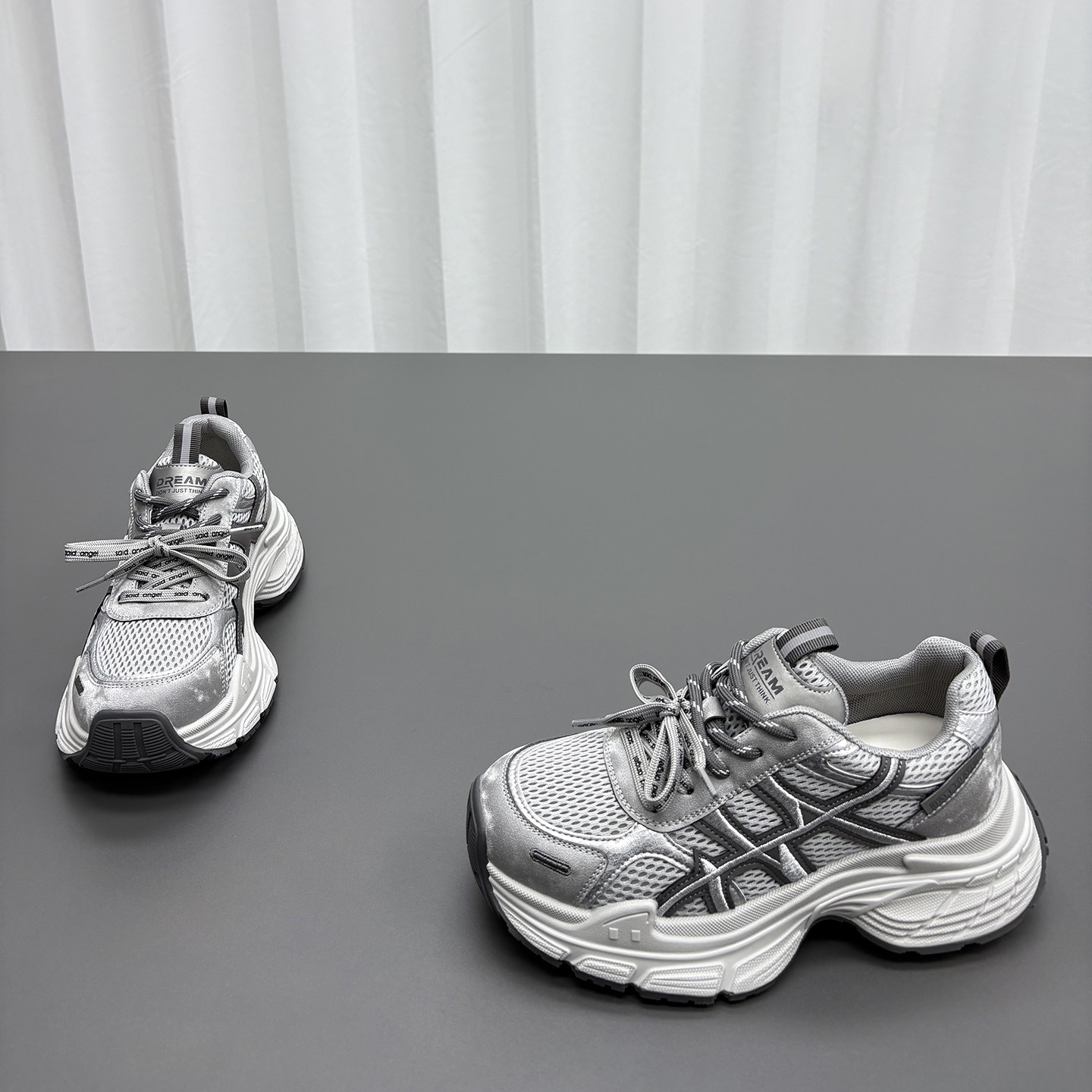 爆款老爹鞋女2025年春夏季款网面厚底增高时尚系带休闲百搭运动鞋