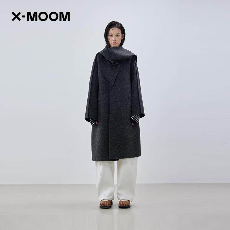 【商场同款】X--MOOM2024冬季新款羊毛围巾oversize双面呢大衣女