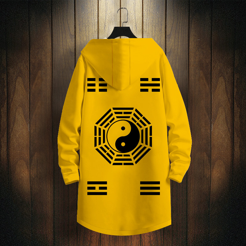 太极八卦印花风衣外套男秋季加厚oversize连帽开衫中长款防风大衣