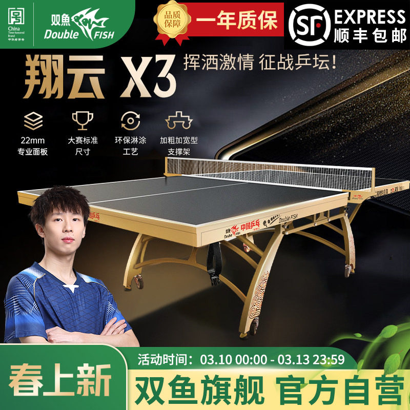 双鱼乒乓球桌家用翔云x3乒乓球台祥云折叠移动式室内标准金色黑色