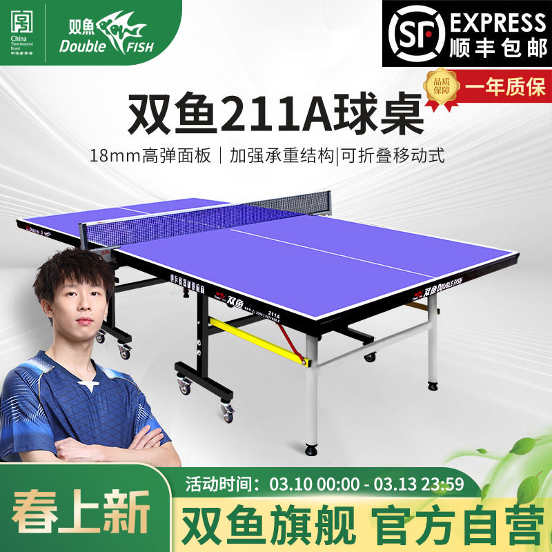 双鱼乒乓球桌官方旗舰店211a室内家用可折叠移动带轮乒乓球台标准