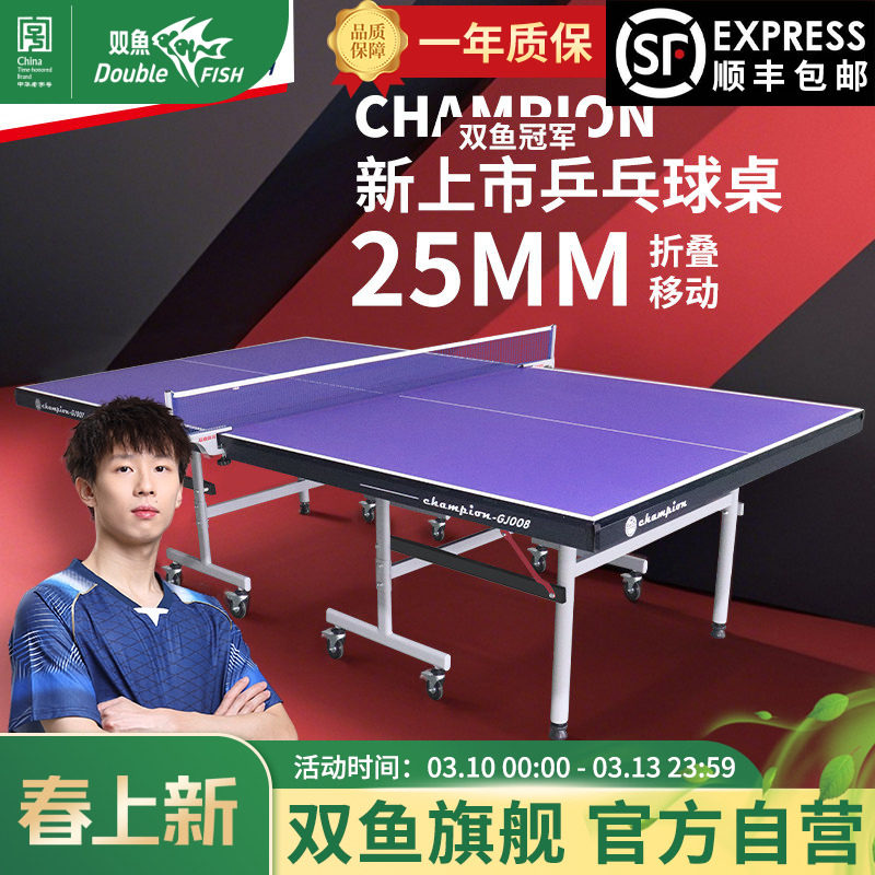 双鱼冠军乒乓球台室内家用25MM面板兵乓球桌可折叠移动式标准尺寸